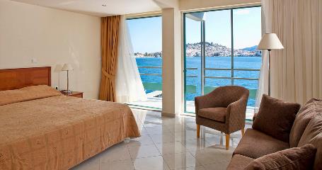 Δίκλινο δωμάτιο με διπλό κρεβάτι ή δύο μονά κρεβάτια, επίπεδη τηλεόραση, θυρίδα ασφαλείας, μικρό ψυγείο, γραφείο, σεσουάρ μαλλιών, βραστήρα, δωρεάν Wi-Fi, κλιματισμό, τηλέφωνο, μπάνιο με ντους ή μπανιέρα, ιδιωτικό μπαλκόνι, θέα στη θάλασσα και στην πόλη του Πόρου