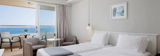 Στο Elea Beach Hotel 4*Sup οι παιδικές τιμές ισχύουν για ηλικίες 4-12 ετών. Τα οικογενειακά δωμάτια είναι με πλευρική θέα θάλασσα και τα 2 παιδιά κοιμούνται σε κουκέτα.